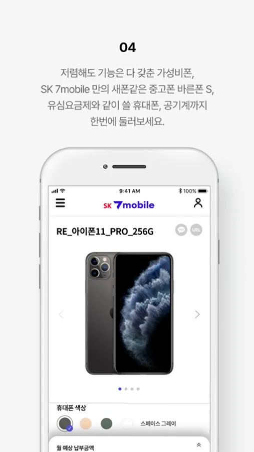 • 휴대폰 : 저렴해도 기능은 다 갖춘 가성비폰, SK 7mobile 만의 새폰같은 중고폰 바른폰S, 유심요금제와 같이 쓸 휴대폰 공기계까지 한번에 둘러보세요.