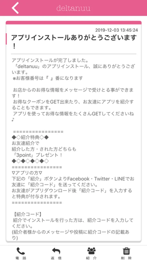 deltanuuのアプリをSNSを通じてお友達に紹介する事ができます。