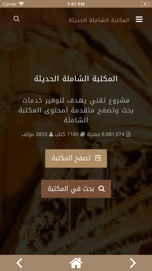 مشروع تقني يهدف لتوفير قالب تقني أنيق وحديث يليق بالمحتوى الثري للمكتبة الشاملة، وقد تم التركيز على توفير محرك بحث سريع ودقيق لكافة أجزاء المحتوى، وأيضا توفير تصفح سلس وسهل لمحتوى المكتبة ومتوافق تماما مع أجهزة الجوال، كما تم عمل بعض المميزات الفريدة كميزة التلوين التلقائي للنصوص والتي تم بناء خوارزمية برمجية مخصصة لهذا الغرض.