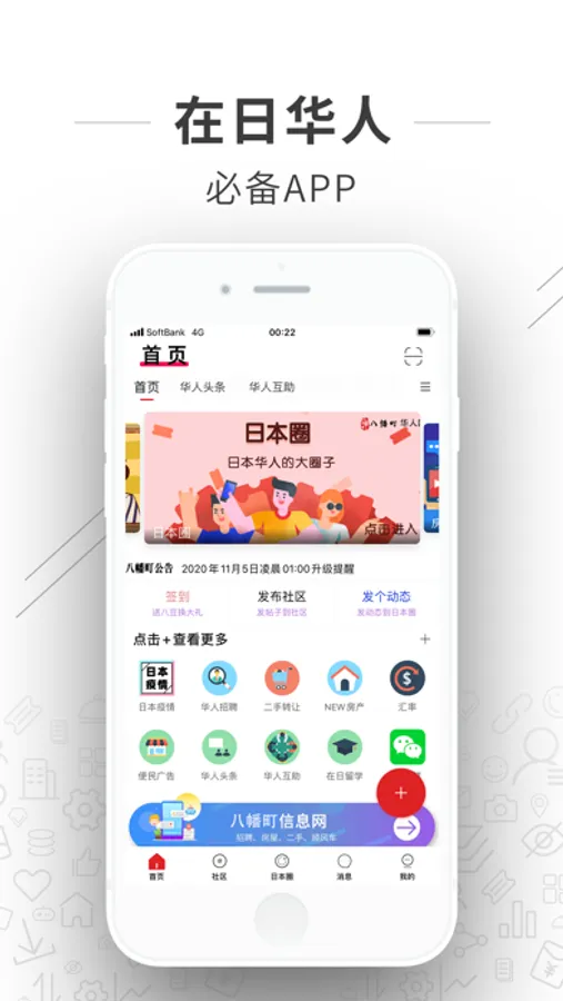 「八幡町」是八幡町网旗下第一轻社交APP,是一家针对在日华人生活,求助,共享,旅游,留学,娱乐等为一体的综合社区服务信息交流平台。八幡町APP有:招聘、不动产、分类信息、交友等多个最接地气的实用板块。打造全新在日华人中文社交!做在日华人心中最具影响力的移动互联网社交平台!