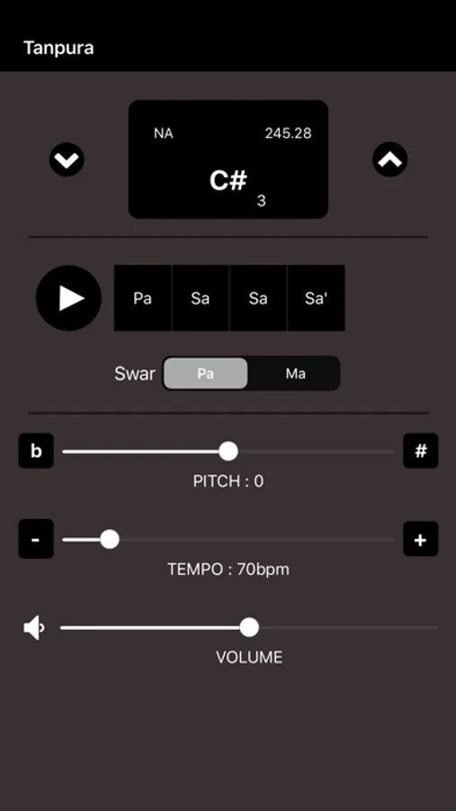 - Could select swar either panchamam or madhyama, with continuous not stop audio loop