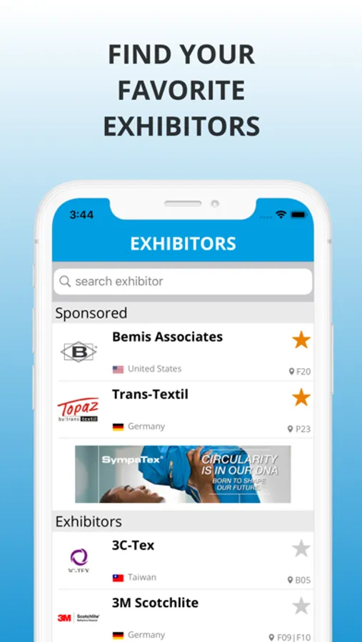 - Check out all exhibitors and mark your favorite ones