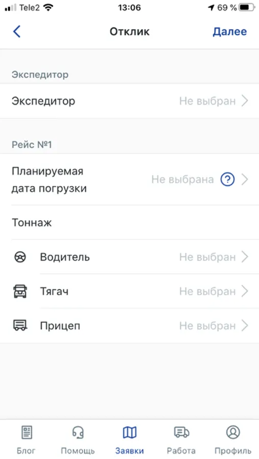 - Заполнять данные о перевозке для формирования акта выполненных работ