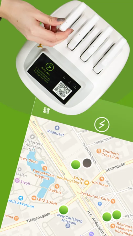 With Jucy you can always charge your phone at one of our partnering venues near you in Copenhagen! So, how does it work?