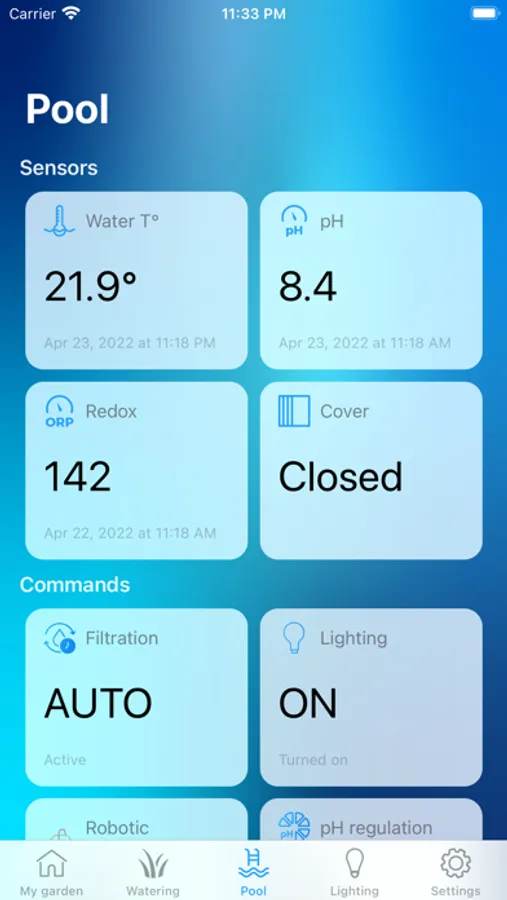 Control the main physico-chemical parameters of your pool water remotely, manage filtration times, control your chlorinator or program your heat pump to guarantee optimum quality of your pool water.