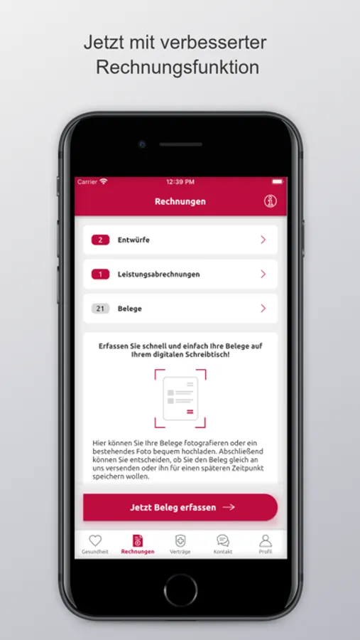 • Einfaches Einreichen dank Foto- und Upload-Funktion für Rechnungen und Belege