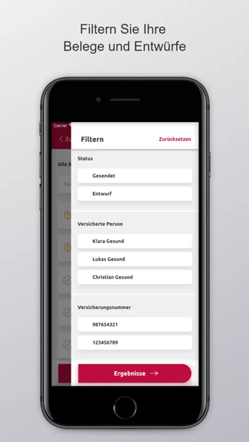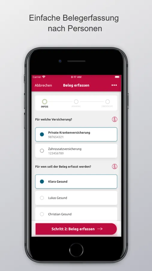 • Ordnen Sie Belege versicherten Personen zu oder fügen Sie Kommentare hinzu.