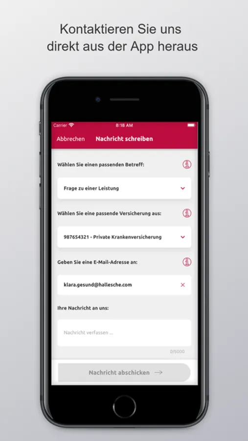 • Bei Fragen können Sie uns direkt aus der App heraus kontaktieren.