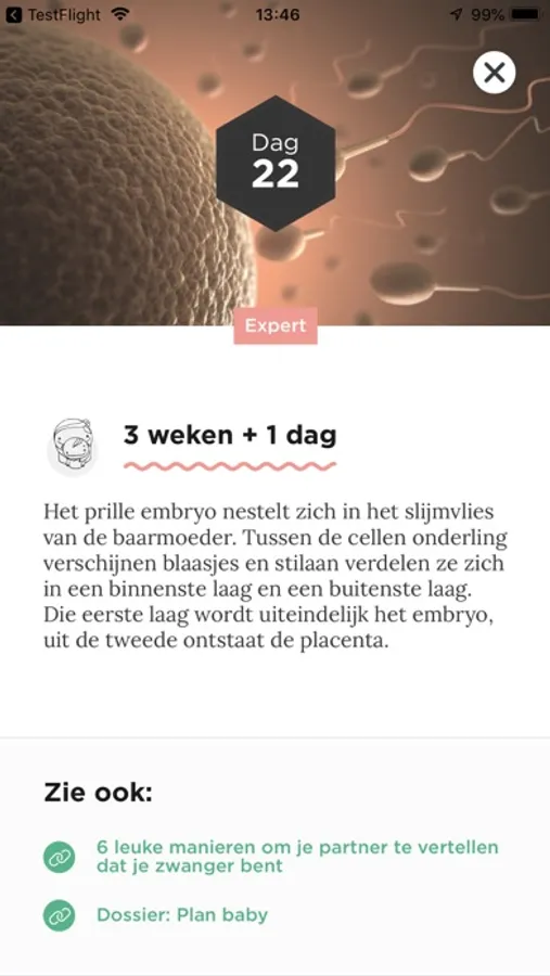 Lees elke dag hoe je baby groeit en zich ontwikkelt, hoe je lichaam verandert en waar je allemaal aan moet denken tijdens je zwangerschap. Van de positieve zwangerschapstest tot de bevallingskoffer: lees alles over de invasie van de hormonen, zwangerschapsdementie, prenatale onderzoeken, zwangerschapskwaaltjes, en nog veel meer.