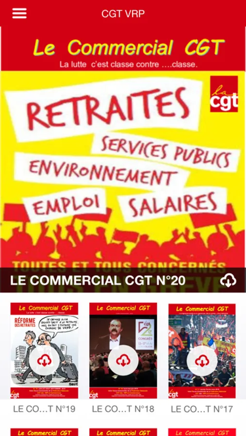 L’application KIOSQUE CGT VRP ET COMMERCIAUX vous permet de lire la revue LE COMMERCIAL CGT au format digital sur votre smartphone ou votre tablette, et également d’accéder aux autres publications telles que les fiches thématiques et les archives…