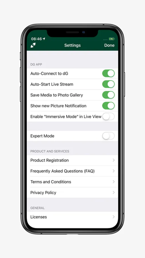 • For more information about the functions and features of the dG app, visit our website or see the FAQs in the app.