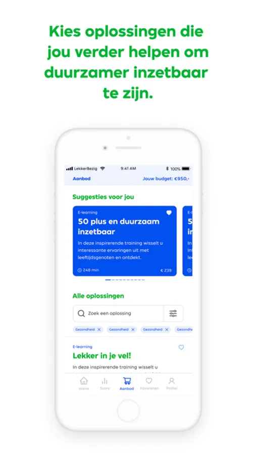 • De app zit bomvol oplossingen om jou verder te helpen om duurzamer inzetbaar te zijn.