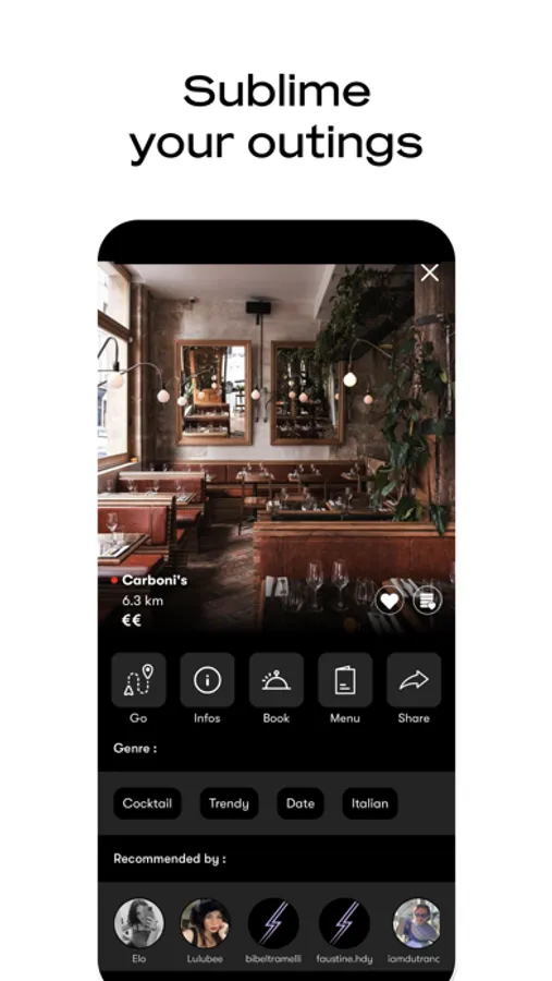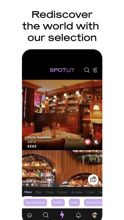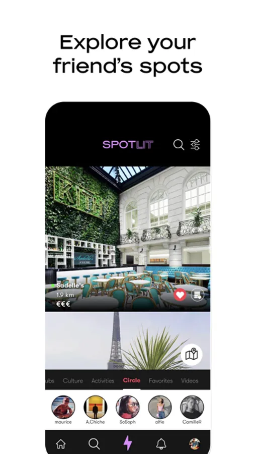 Gastronomy, culture, shopping, fashion, well-being: Spotlit is an address book 2.0, which adapts to your characteristics and requirements, to help you find new places, and to (re)discover them, in your city or elsewhere.