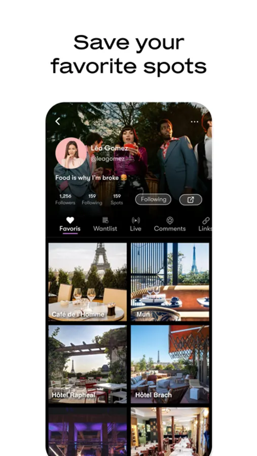 ◆ A social platform, with friends and followers, to discover the favorites of your network and stay in touch with your community.