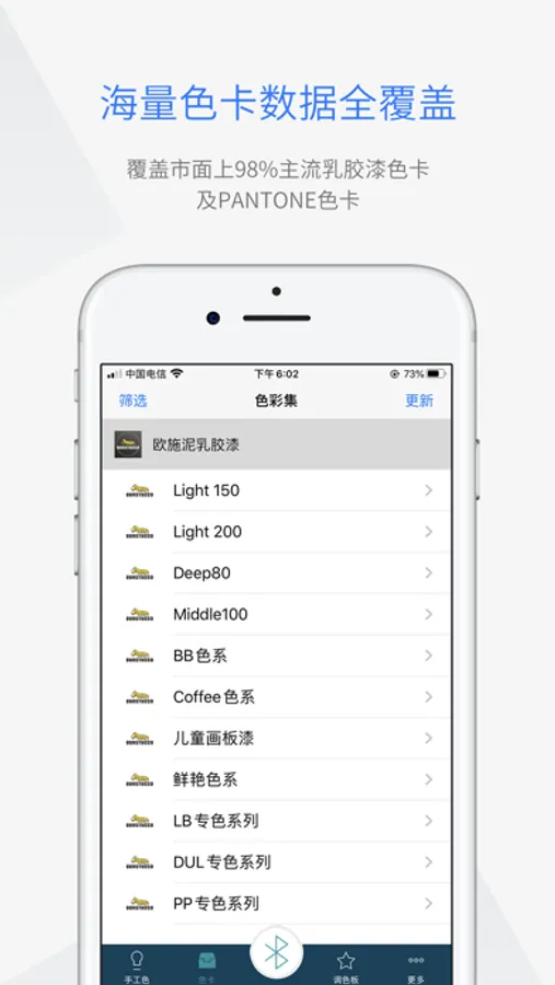*创新式的色彩调色数据库,全部色卡均可进行调色打样,无论是大量调色,还是小样调色,色彩始终如一。准确还原色彩的本来面目