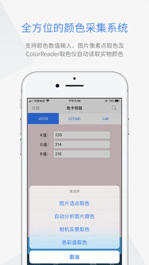 *支持取色仪取色,一点即可获取实物颜色。APP支持著名色彩提供商DataColor生产的取色仪联机一键获取实物颜色