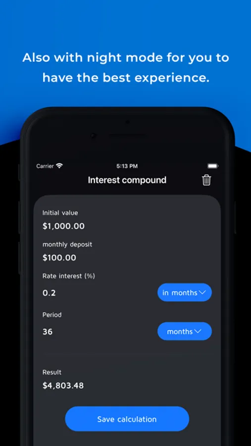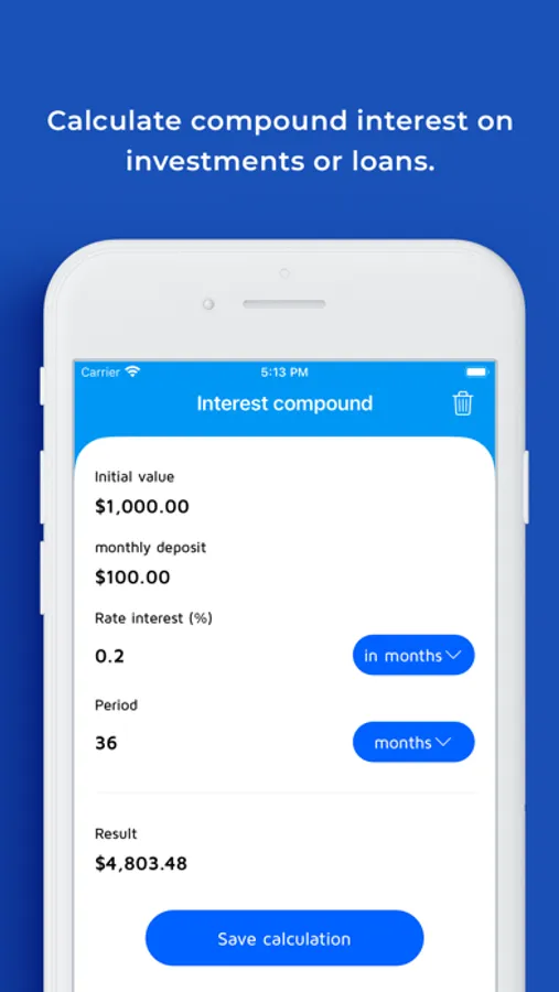 Calculate COMPOUND and SIMPLE interest with ease. Ideal to simulate investments in savings, among others.