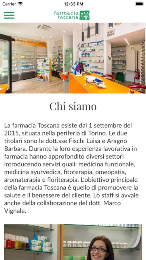 L'App della Farmacia Toscana di Torino ti permette di avere i tuoi farmacisti di fiducia sempre a portata di mano con consigli, informazioni, prenotazioni, ordini, richieste di prodotti e servizi in farmacia.