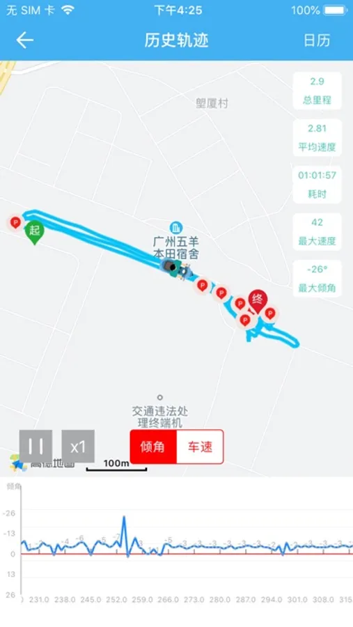 1.轨迹查询:对车辆的行驶情况进行记录。随时随地查看每次美好出行的行驶里程,车速,轨迹。