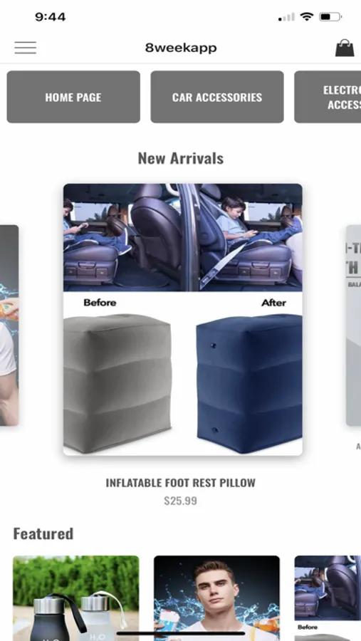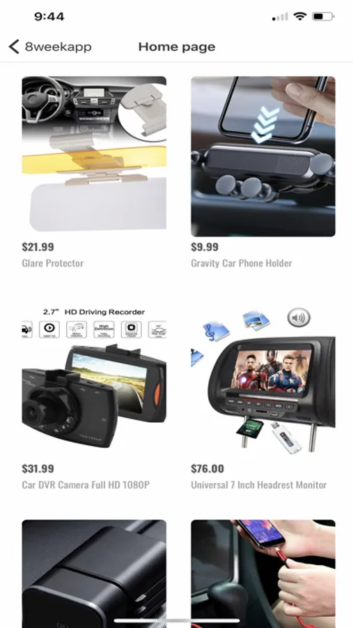 8WeekApp E-commerce Store. Selling popular items within car accessories, electronics, smart home gadgets, and sports & outdoor.