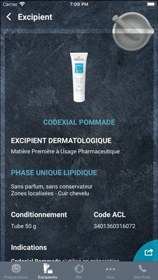 - Un descriptif de chacun de nos excipients (conditionnement, code ACL, indications, propriétés, utilisation et composition)
