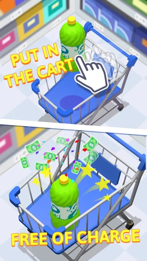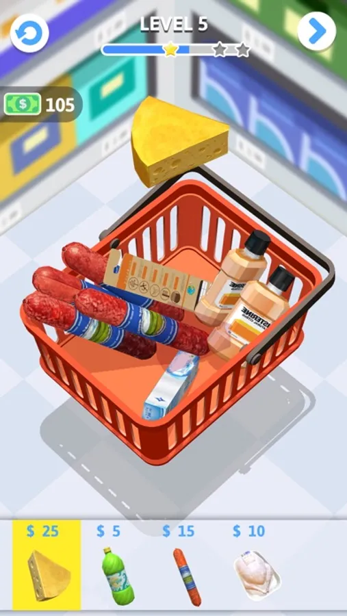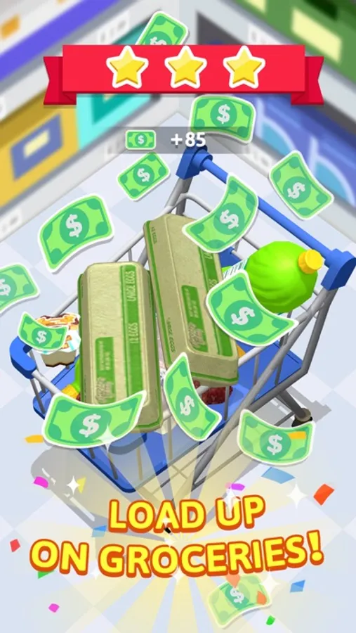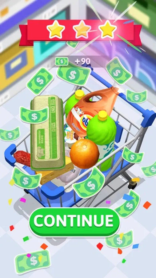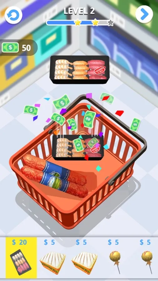 Pay attention to the shadow of the goods, and find a perfect droppoint to release it. You can also slide the menu to choose the order to collect goods. The more goods you put in your cart, the more money and stars you can earn. But you may fail it if you drop the goods out of your cart.