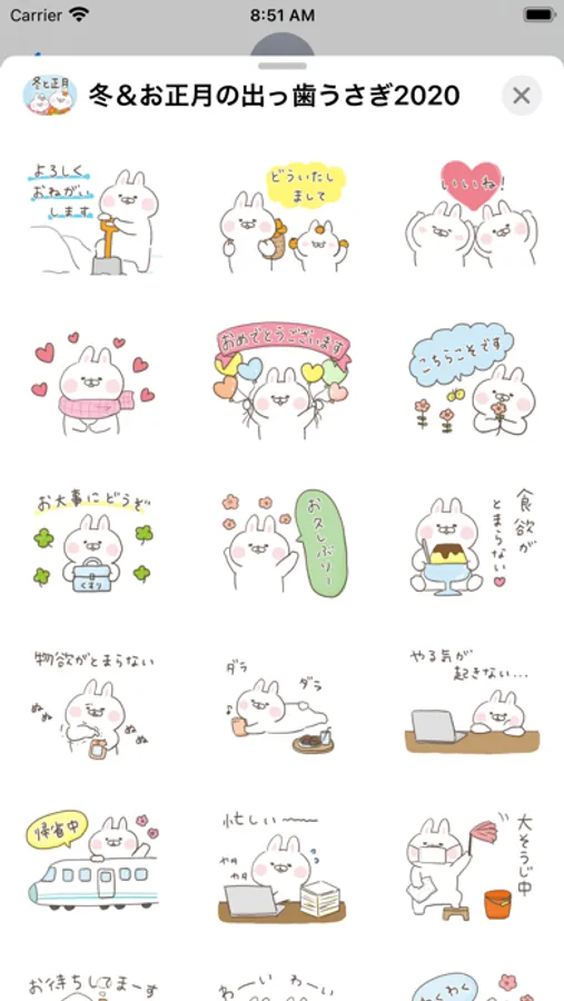 年末年始に使える冬の出っ歯うさぎステッカーです。