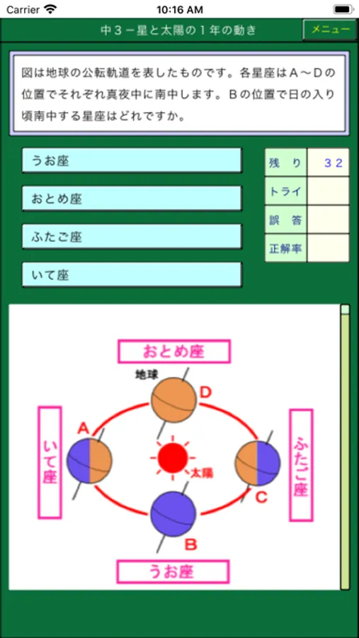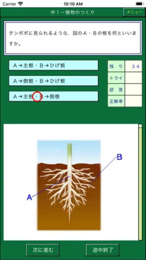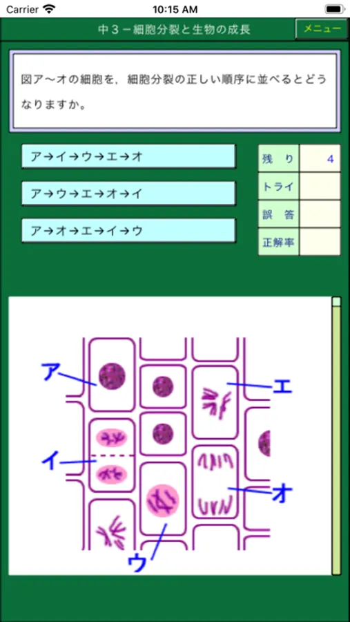 正解削除機能により間違った問題は繰り返し出題されます。また,間違った問題のみ実行することにより効率的に学習できます。