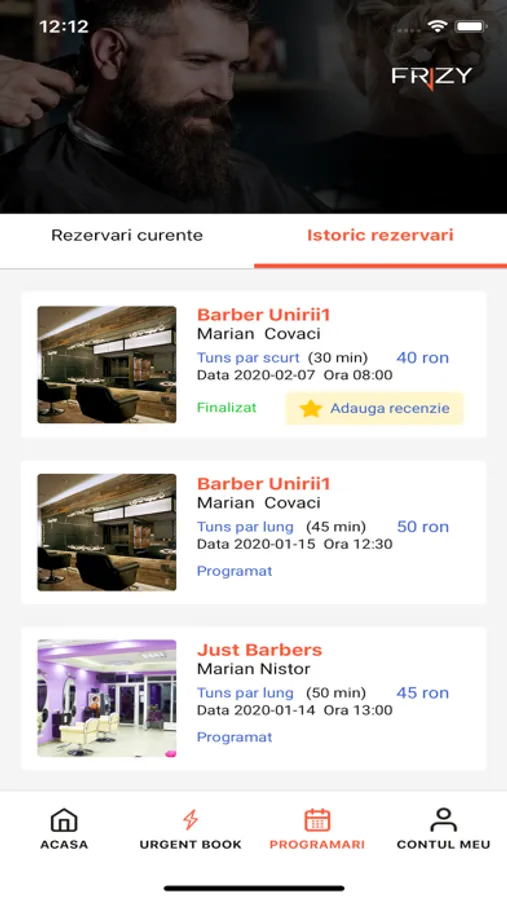 Istoric programari - vezi ultimele saloane la care te-ai programat