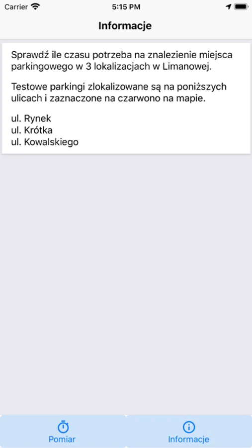 Aplikacja do pomiaru czasu parkowania w Limanowej