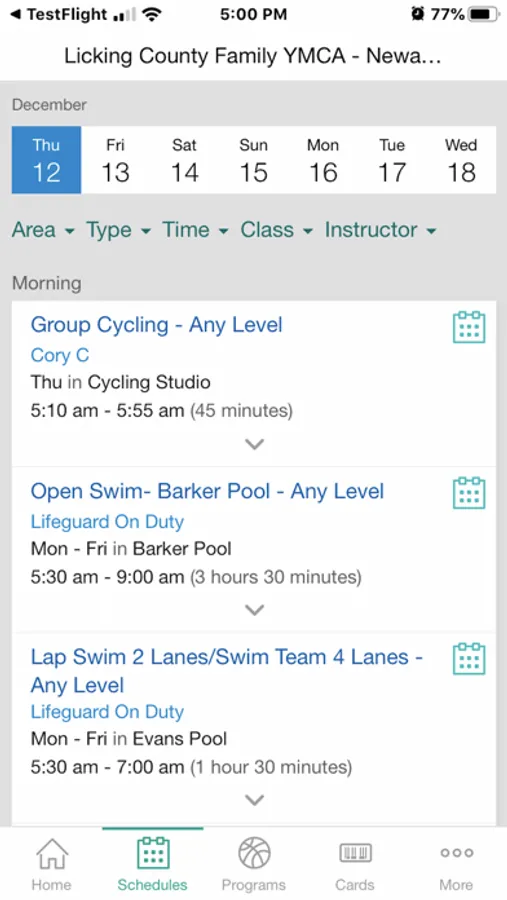 • Easily view schedules for each day and filter for the types of classes that you like.
