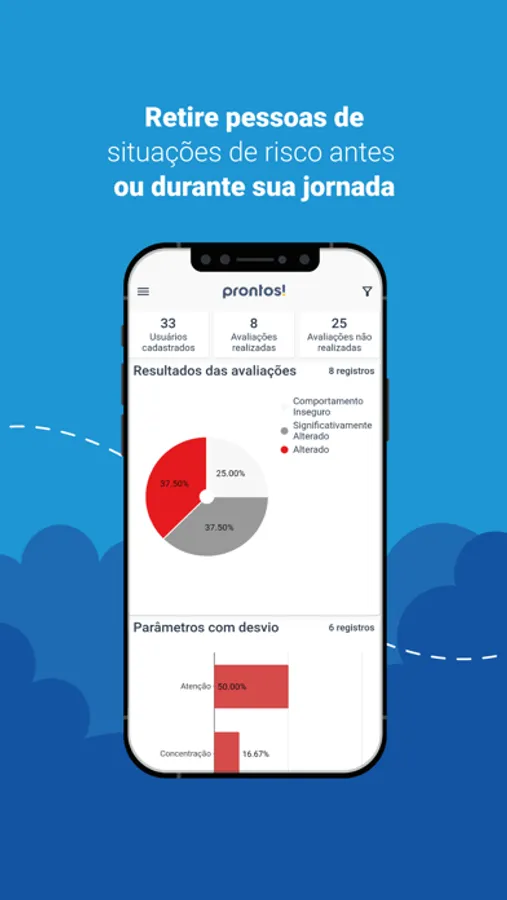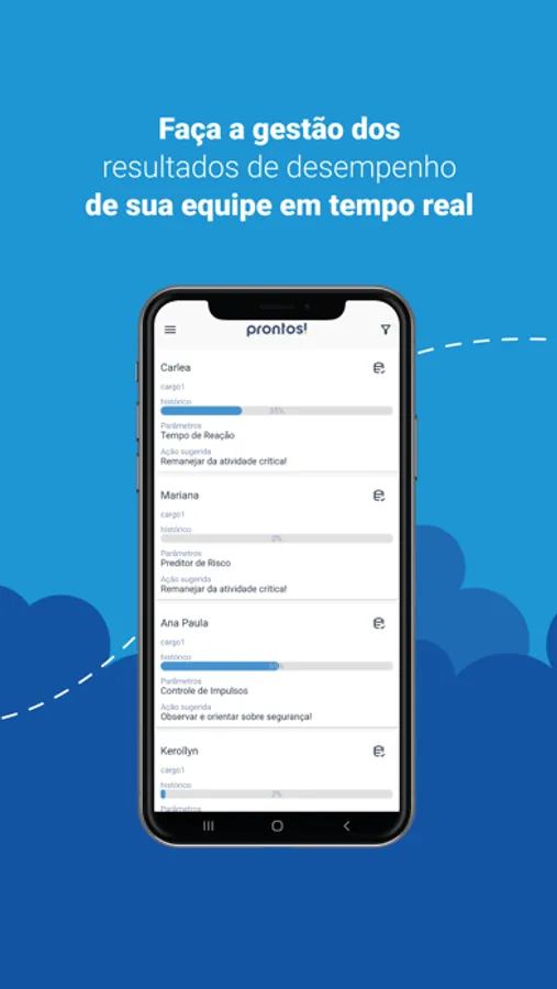 O aplicativo do Prontos! Modulo de Gestão busca entregar ao supervisor/líder o resultado de seu colaborador o mais rápido possível para que a decisão seja tomada e retire o colaborador do risco.
