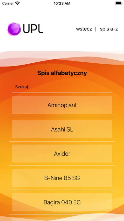 Aplikacja zawiera informacje o wszystkich produktach w ofercie UPL i umożliwia łatwe odnalezienie interesujących nas środków.