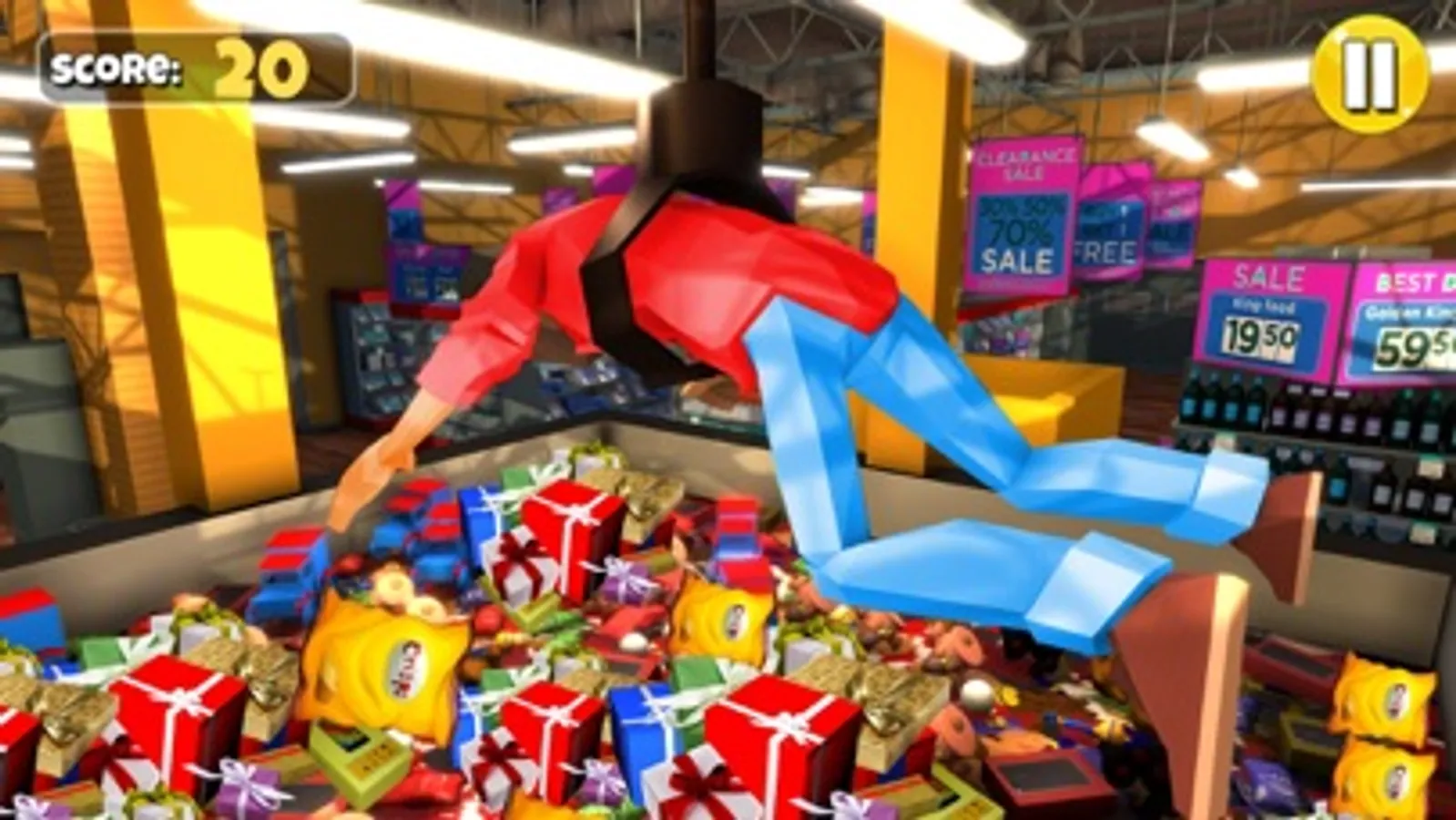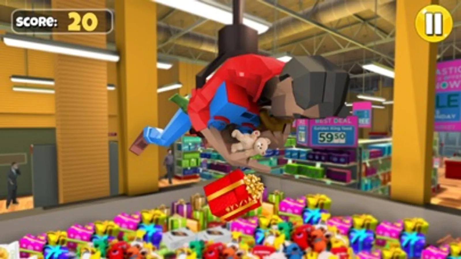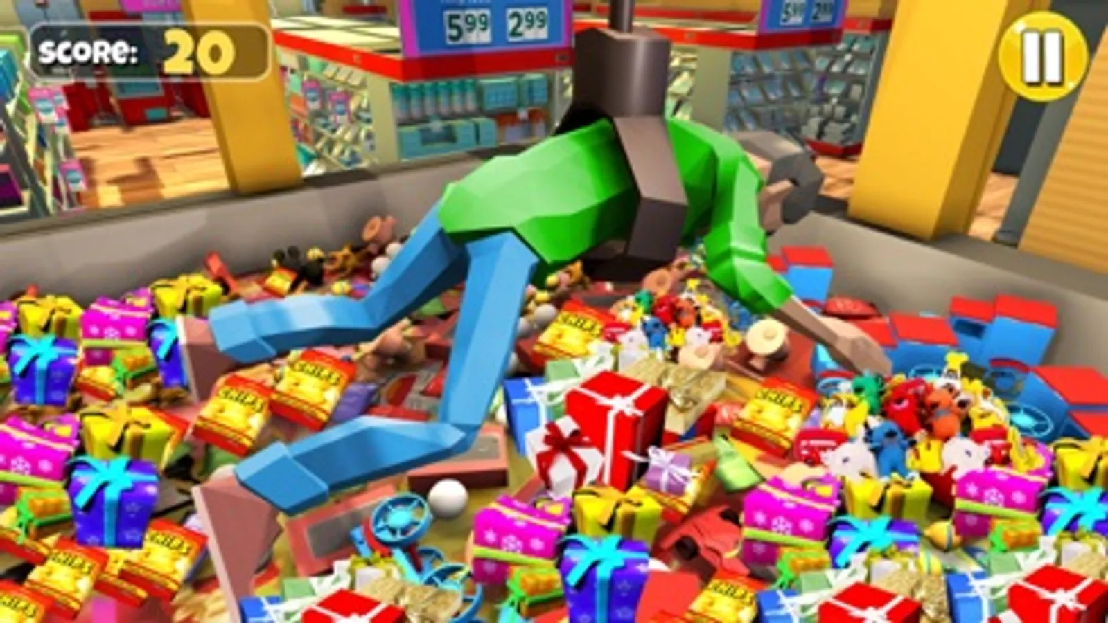Real-time experience to play the human claw machine and grab the prize. In this claw machine game, you can win money, real toys, plush toys, jewelry, christmas snow, and real prizes. In this crane game, you have to collect a gift list in a limited time play. You will be tied to the machine handle by a rope and free to go to collect toys. The player can move the claw machine back, forth, up, down and sideways. After playtime, the things you collected will be counted and on that bases, you win coins.