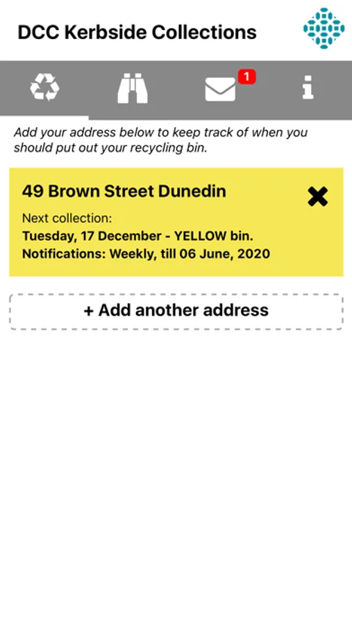 Dunedin City Council kerbside recycling days and rubbish and recycling directory. A handy app which helps you find what your collection day is and which fortnightly recycling collection is due. The app can send you a weekly notification reminding you to put out your rubbish and the right recycling bin 7pm the night prior.