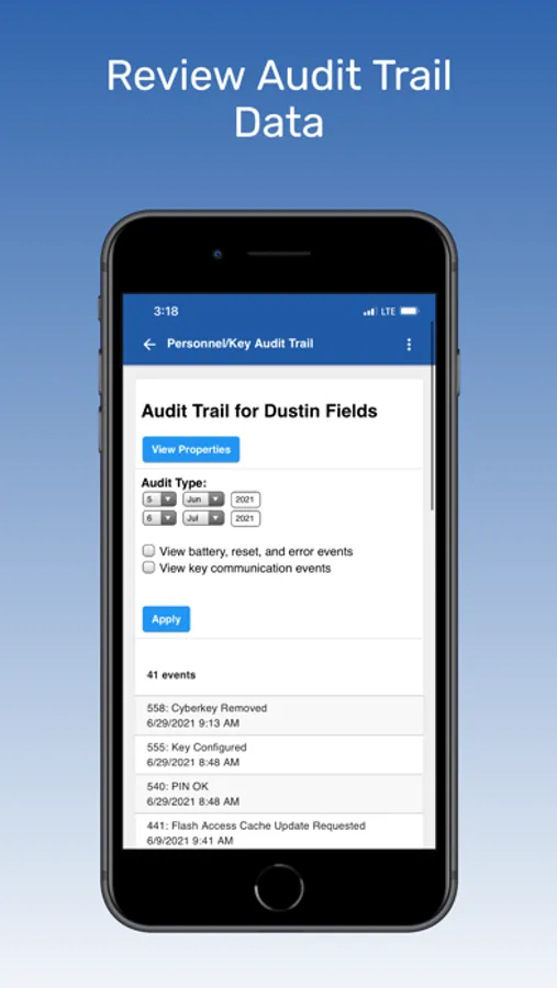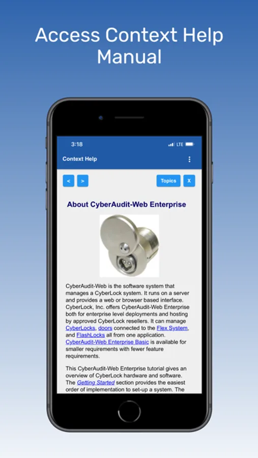 This app is designed to be a window into CyberAudit-Web, with a subset of modules and actions supported. The modules include: Doors, Interhub-Signals, Locks, and People.