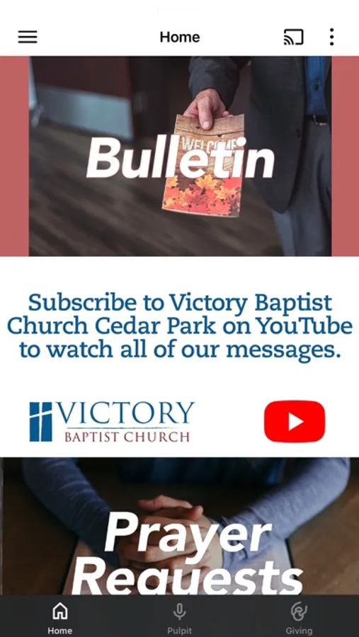 Keep up with all that is happening at Victory Baptist Church in Cedar Park Texas, with this simple app you can find announcements, Calendars, Past Sermons and more with this app.