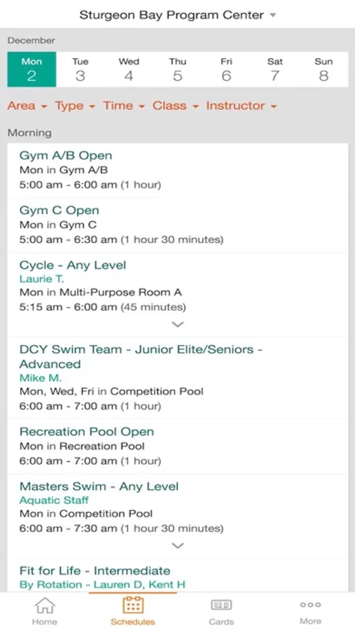 • Easily view schedules for each day and filter for the types of classes that you like.