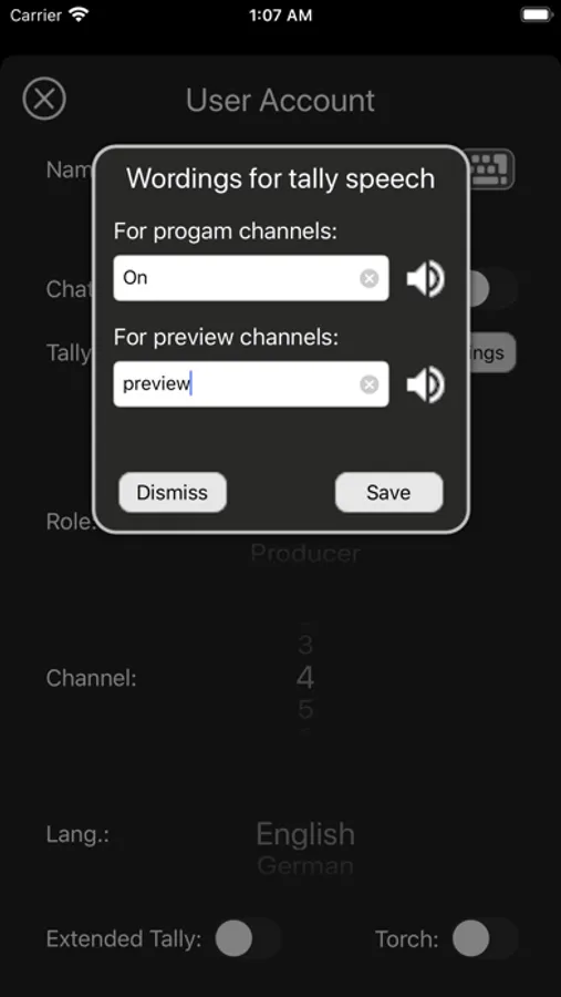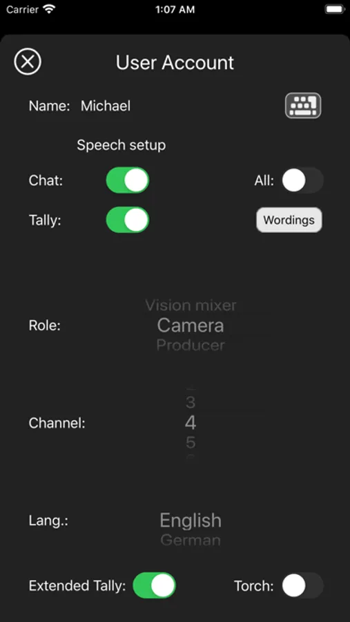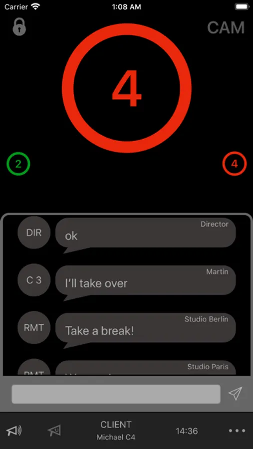You can assign an ATEM channel to a client, so the client, e.g. a camera operator, knows when he is “live” or on “preview”. This informations is presented optically and optionally via speech, via torch and iPhone vibrations.