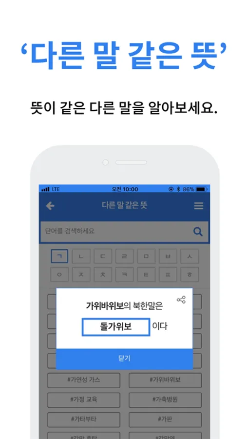 의미는 같지만 말이 다른 남과 북의 단어를 비교해보세요.