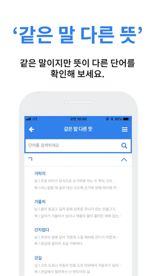 같은 단어이지만 의미가 다른 남과 북의 단어를 비교해보세요.