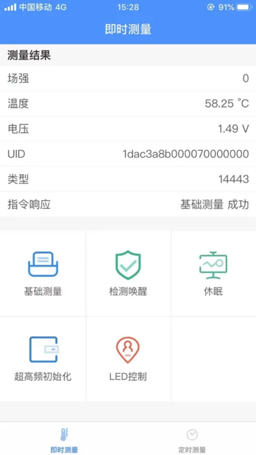 一款基于IOS13开放的NFC读写功能开发的工具型APP,功能是向我们的DT160测温芯片产品发送测量指令,无需用户登录,可直接使用,支持14443,15693协议。这款APP可以向测温芯片发送唤醒,LED灯开关,温度,电压,场强测量,定时测温等指令。