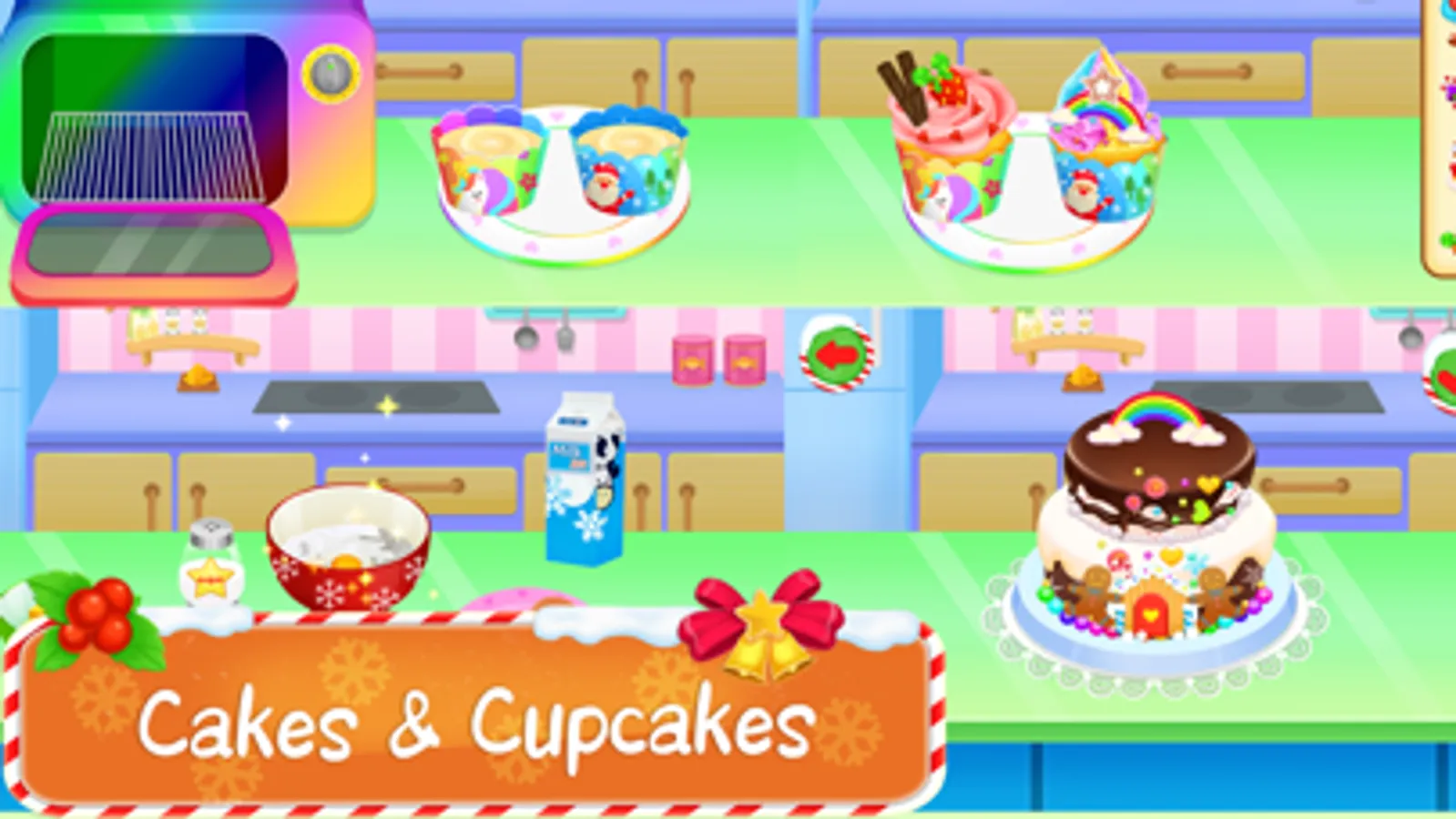Ho ho ho, Merry Christmas! Santa Claus is coming to town! Play the best Christmas baking game. Be the best bakery shop owner, make sweet cakes and treats for the holiday. Santa will come and give the delicous sweet gifts to all kids in town.