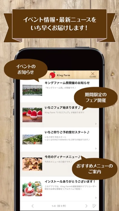 キングファームでは季節毎に収穫体験など、様々なイベントを企画しています。それらの情報をアプリ会員様限定で先行配信。