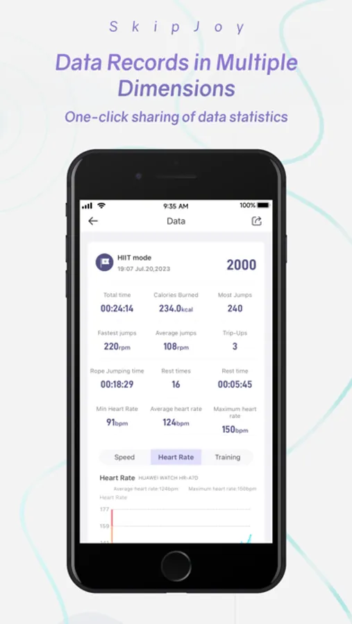 • 6 modes are optional: Counting jump, Timing jump, Free jump, HIIT jump, Course jump, AI jump, to meet your different training needs;