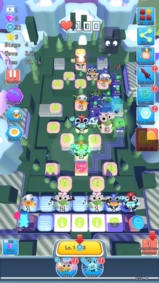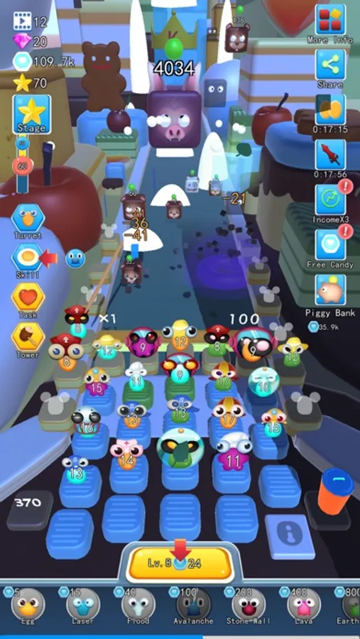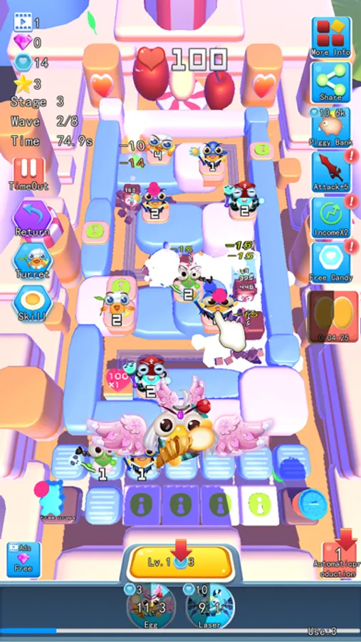 *There is a gourmet island deep under the sea. The Big Eye Village on the island is the home to the Candy Brothers who make cakes.The aroma of the cake drifted to the animal village on the island. The duck who smelled the aroma came to steal the cake.Ducks brought a large army of animals!Please protect the cake.Big eye candy!Start fighting!