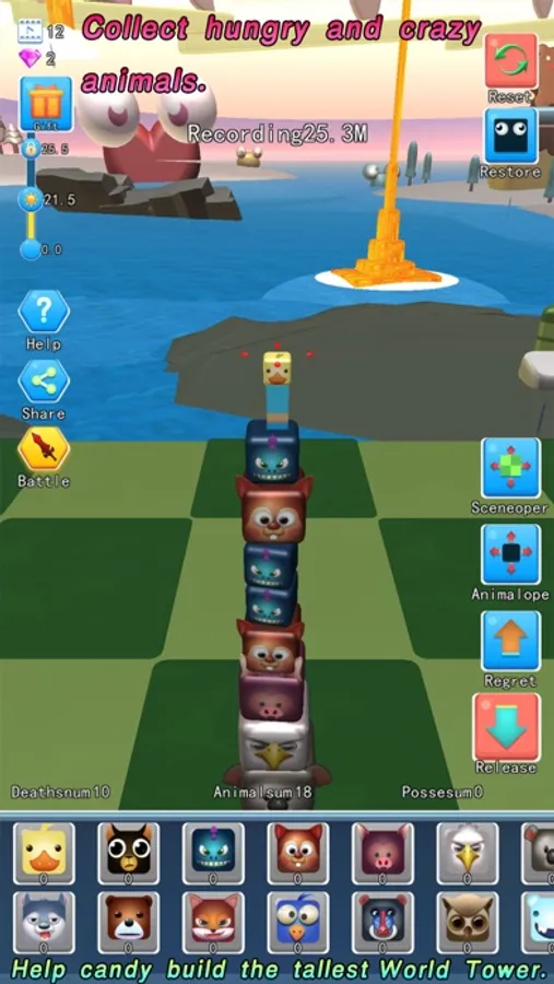 *To build the tallest animal world tower, you need to accurately judge and release animals.