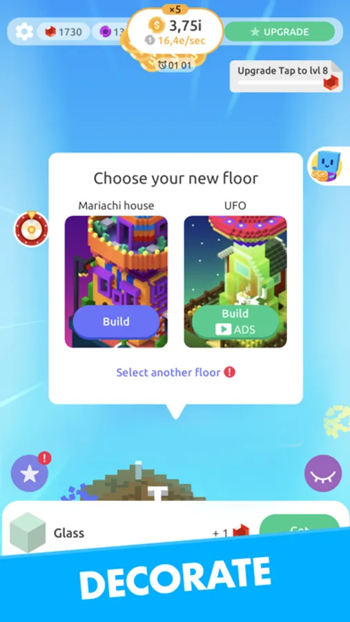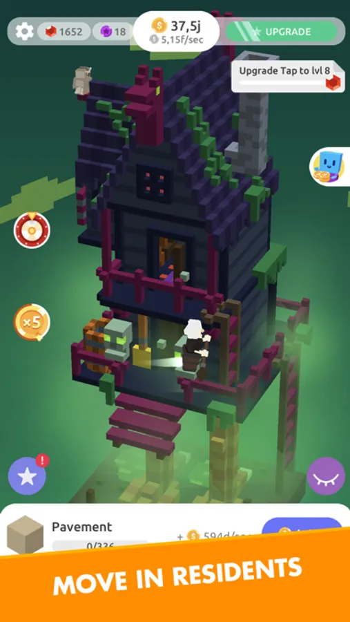 Creating your own design as simple as it sounds: buy a piece of building materials with one tap, check out how it looks on the walls of your high-rise tower. Enjoy creation process, build an amazing construction and make a fortune!