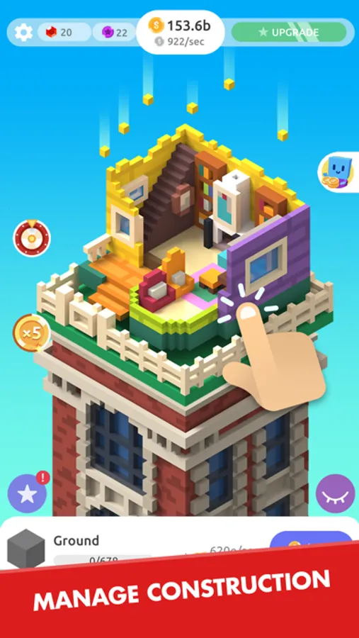 Time to build up your profitable business! Manage cash and make decisions as a construction manager and with every tap your tower will improve. And it’s only for you to know how your tower will look like.