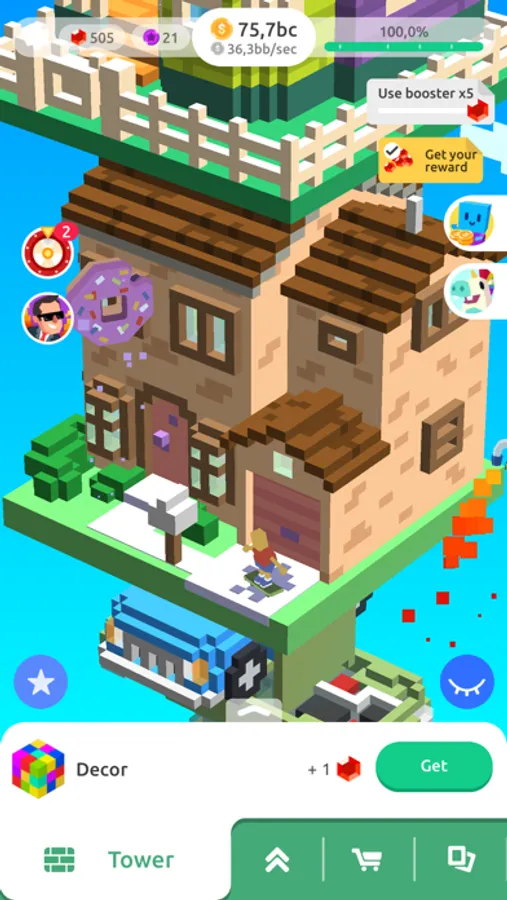 Let’s make something fantastic! Each floor of your tower will have its own design. It can be anything: stone fortress, giant fairy tree, sand castle or even space station!